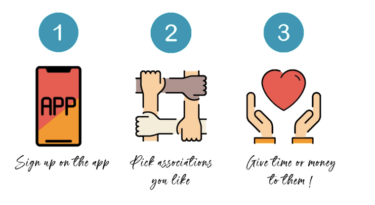 Everything is done via our application. Sign up, register your favorite associations among our catalogue and share your kindness : It’s as simple as it is !